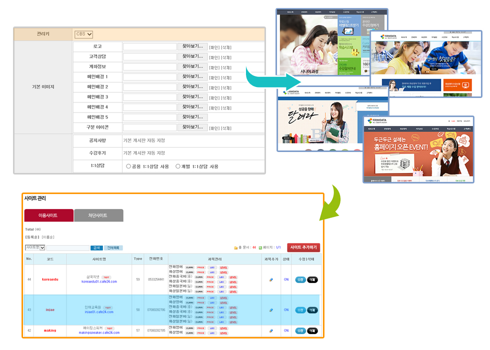 사이트 생성 및 사이트관리 페이지 예제